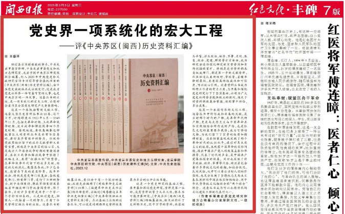 • 党史界一项系统化的宏大工程——评《中央苏区(闽西)历史资料汇编》